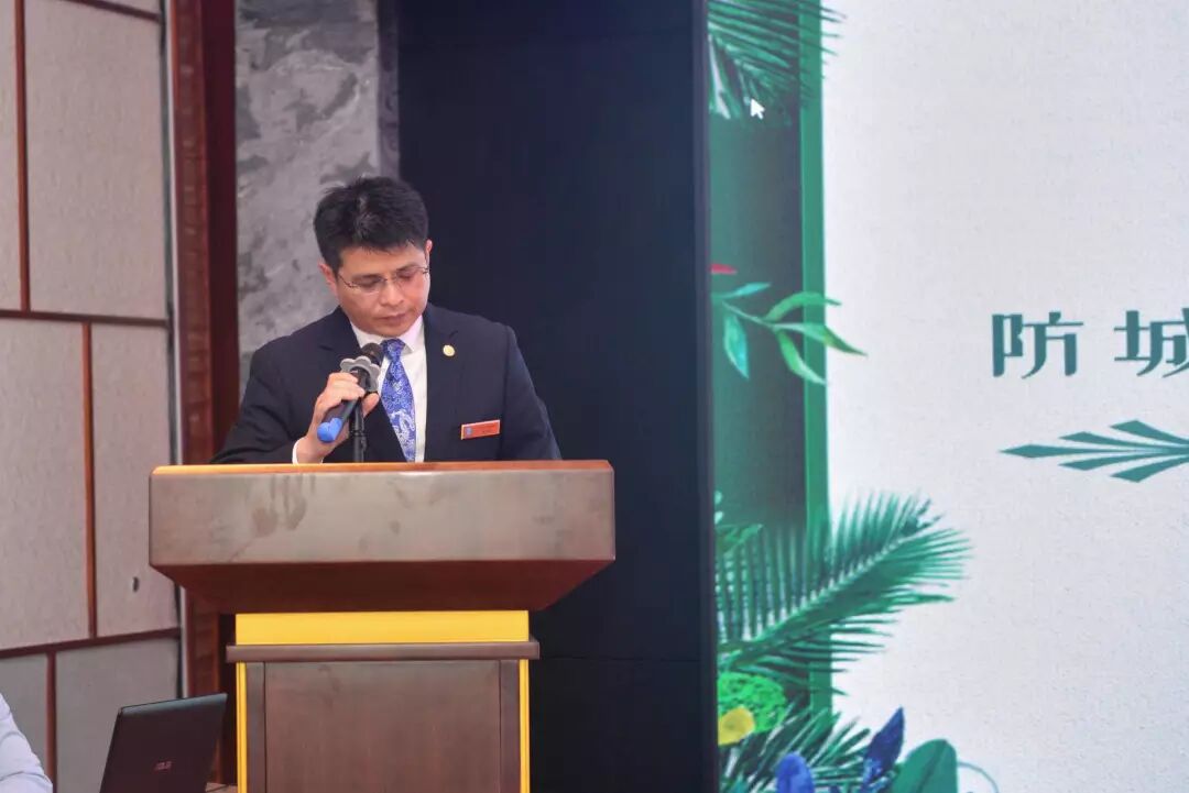 防城港三块石萨维尔度假酒店总经理何东先生致欢迎辞。何总表示:在这春意盎然、清风送爽的季节迎来了防城港三块石度假酒店首次旅游推介会,无比荣幸的邀请到了来自广西南宁、北海、桂林、柳州、以及防城港等地的各位领导、嘉宾和旅行社朋友莅临酒店,对在场光临的领导以及各业界朋友表示了衷心的祝福和真诚的问候。