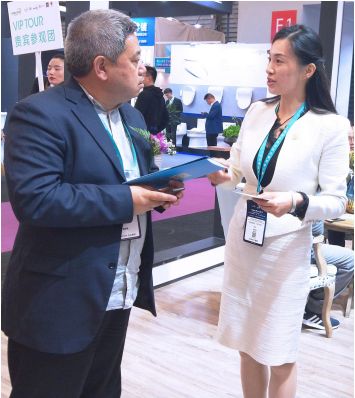 看!萨维尔酒店中国区团队的同事们在为参展观众们正在讲解我们的服务理念和国际化的管理优势。