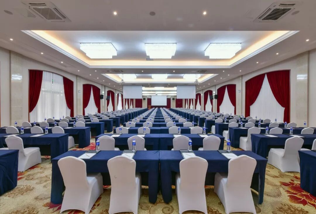 酒店拥有4间多功能会议室及面积近1000平方米的豪华无柱宴会厅,宴会厅层高6米,可同时容纳600人在此聚会。厅内装饰大气典雅,大型水晶顶灯和金碧辉煌的欧式古典装潢别具一格,是您举办各类聚会的最优之选。