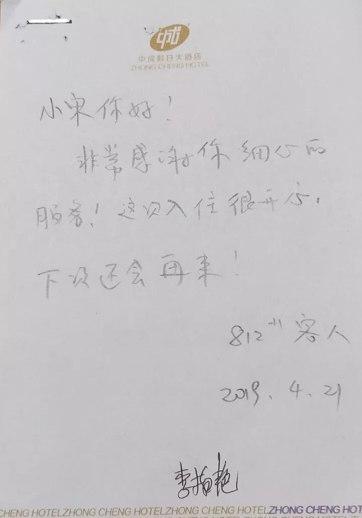 住在 中成假日大酒店的时候,客房内赠送了具有地域特色的俄罗斯巧克力糖果,还有充满了创意与爱心的夜床礼,客人怎么能不满意?