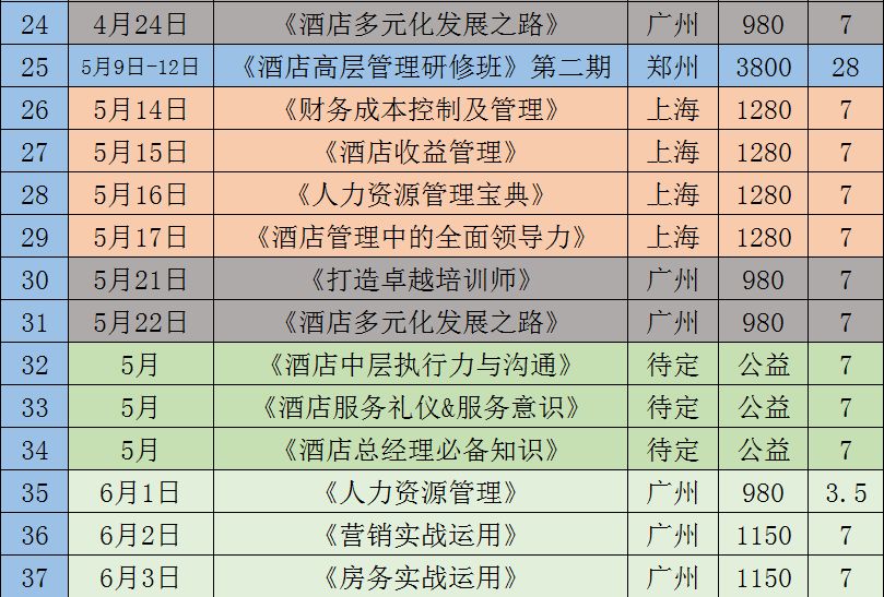 理诺士&萨维尔 2020年度《酒店高层管理专题研修班》开课计划