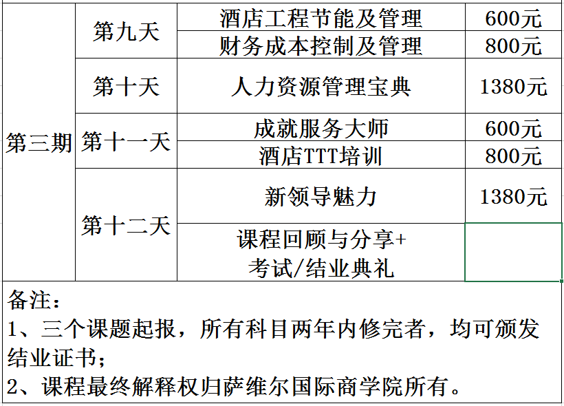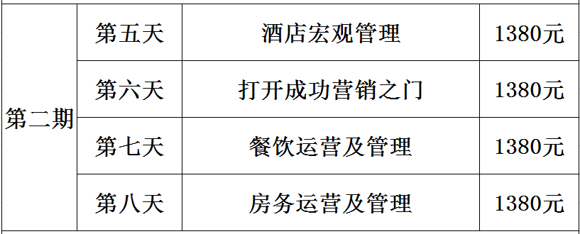 注:学费均不含住宿及膳食。(支持四星级标准以上的酒店客房置换)