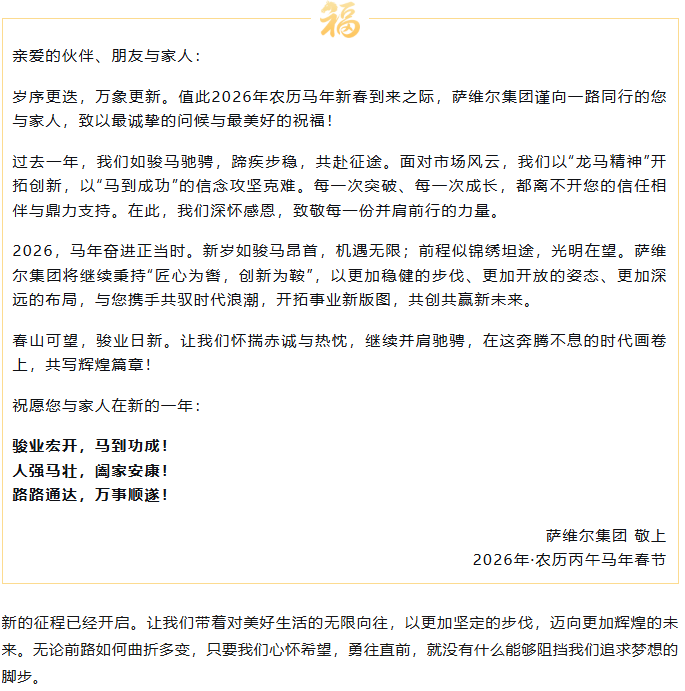 【SAVILE】骏马奔腾,共赴新程 | 萨维尔集团给您拜年啦!